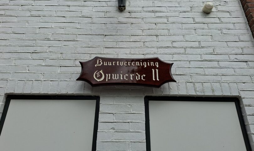 Daarbij viel ook op dat het houtenbord aan de voorkant van het gebouw ook onderhoud nodig had.